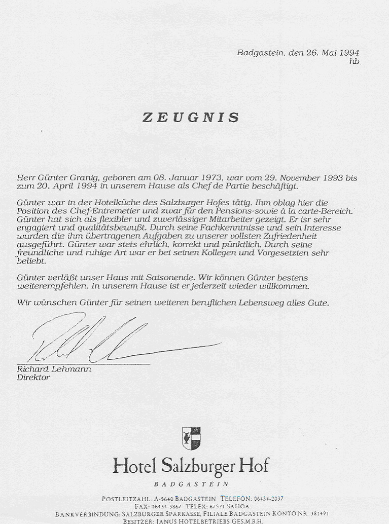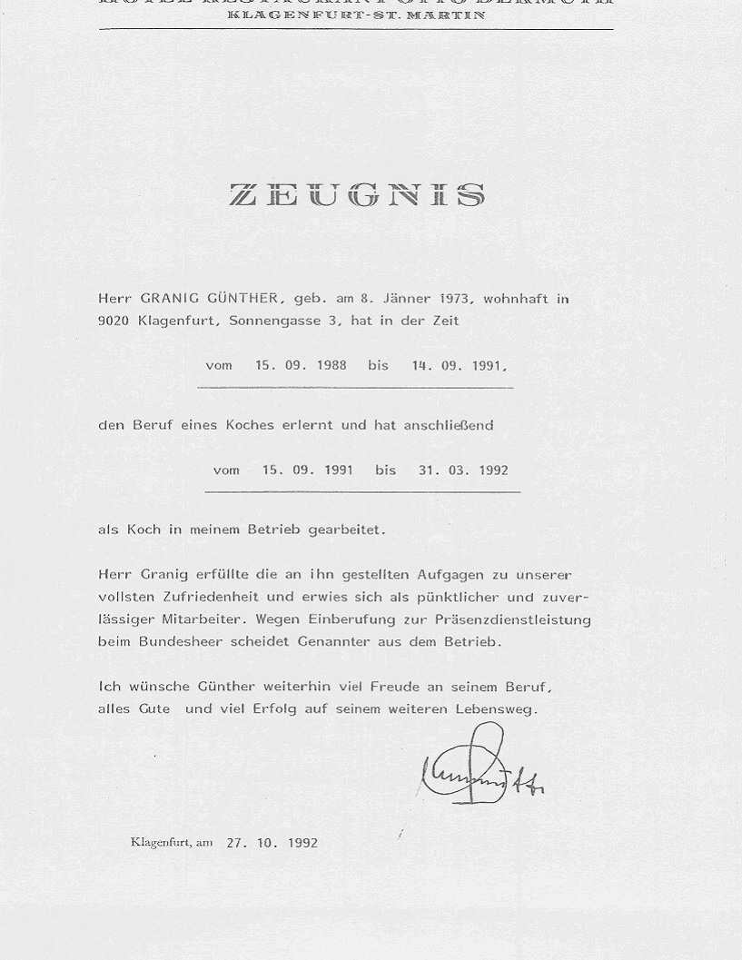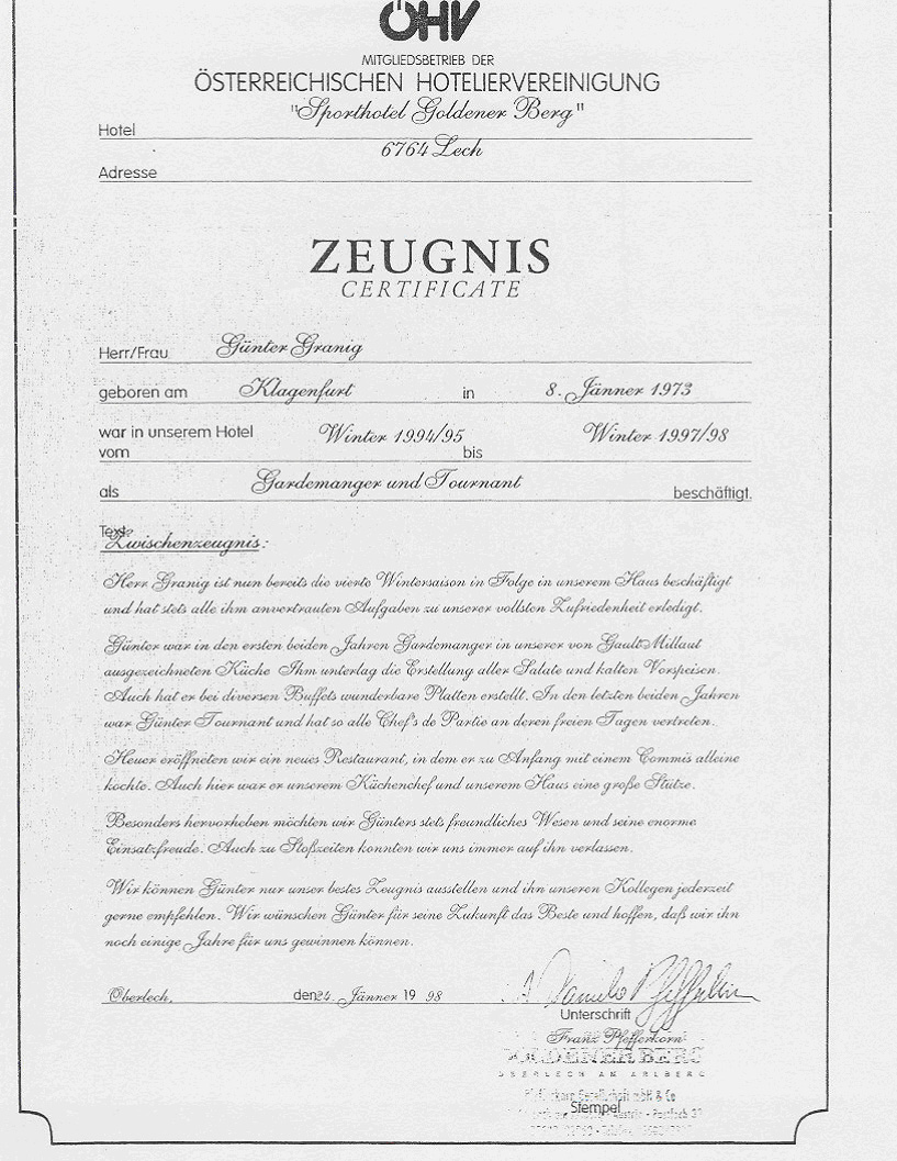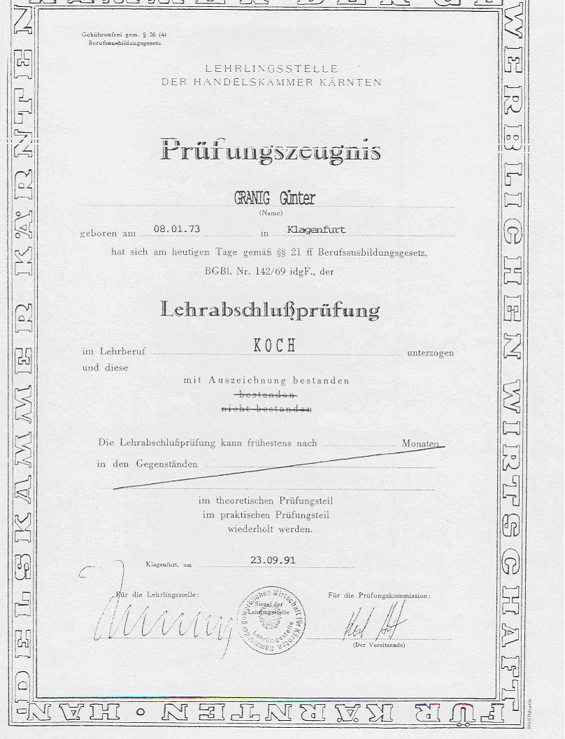 dreijährige Ausbildung zum Koch. Weil ich bei meiner Arbeit als Koch eine ausserordentlich