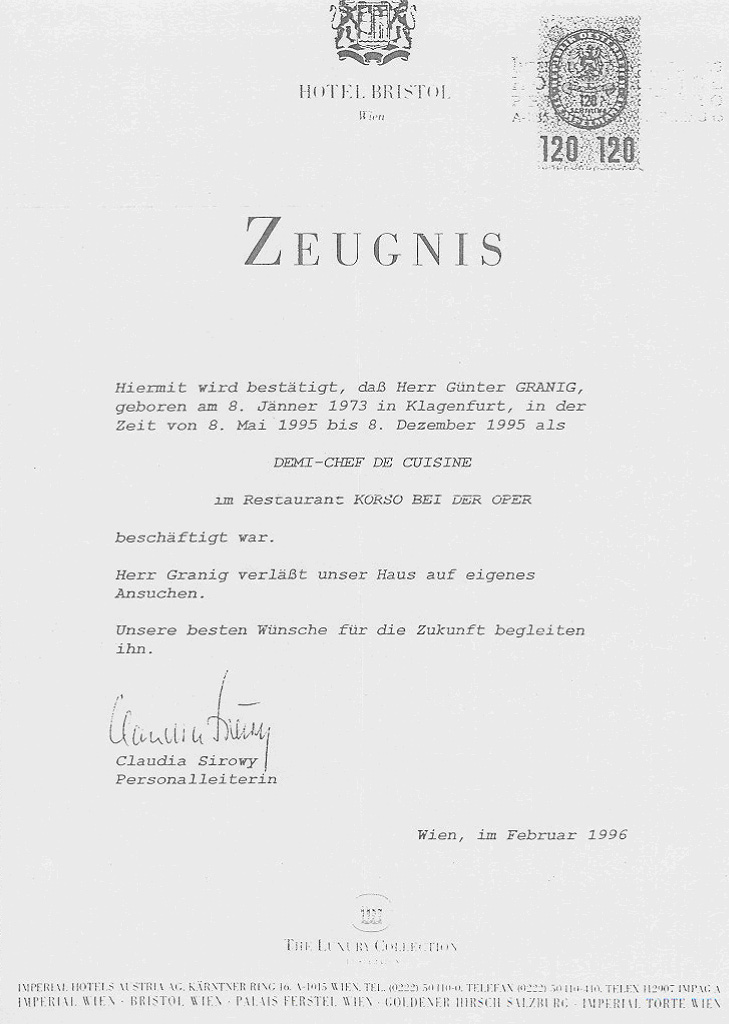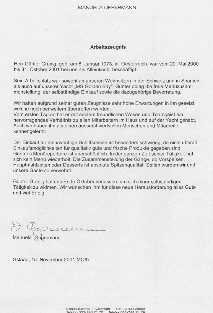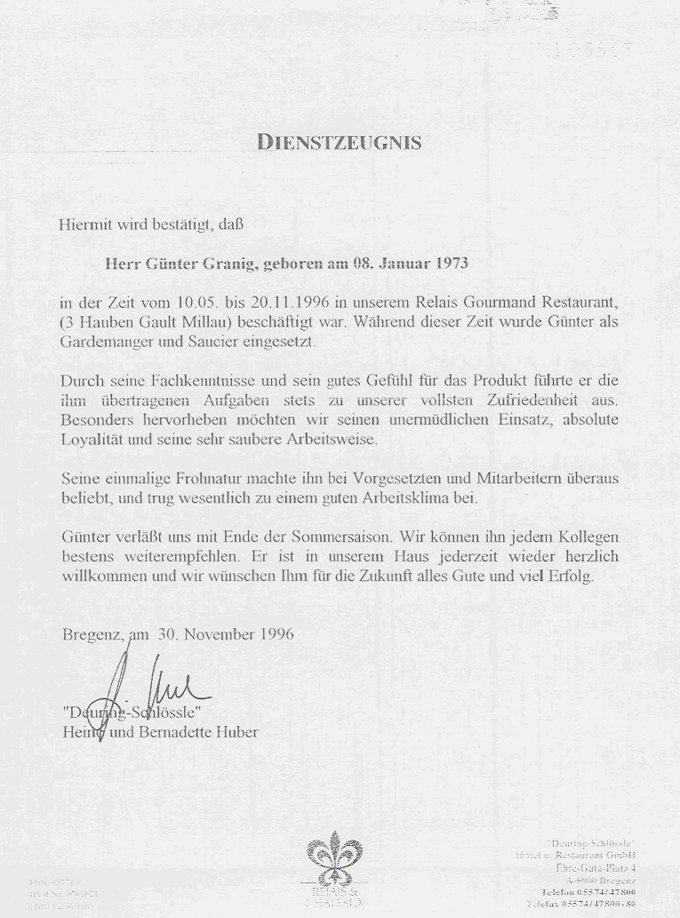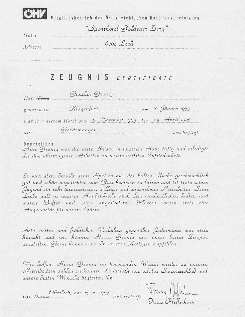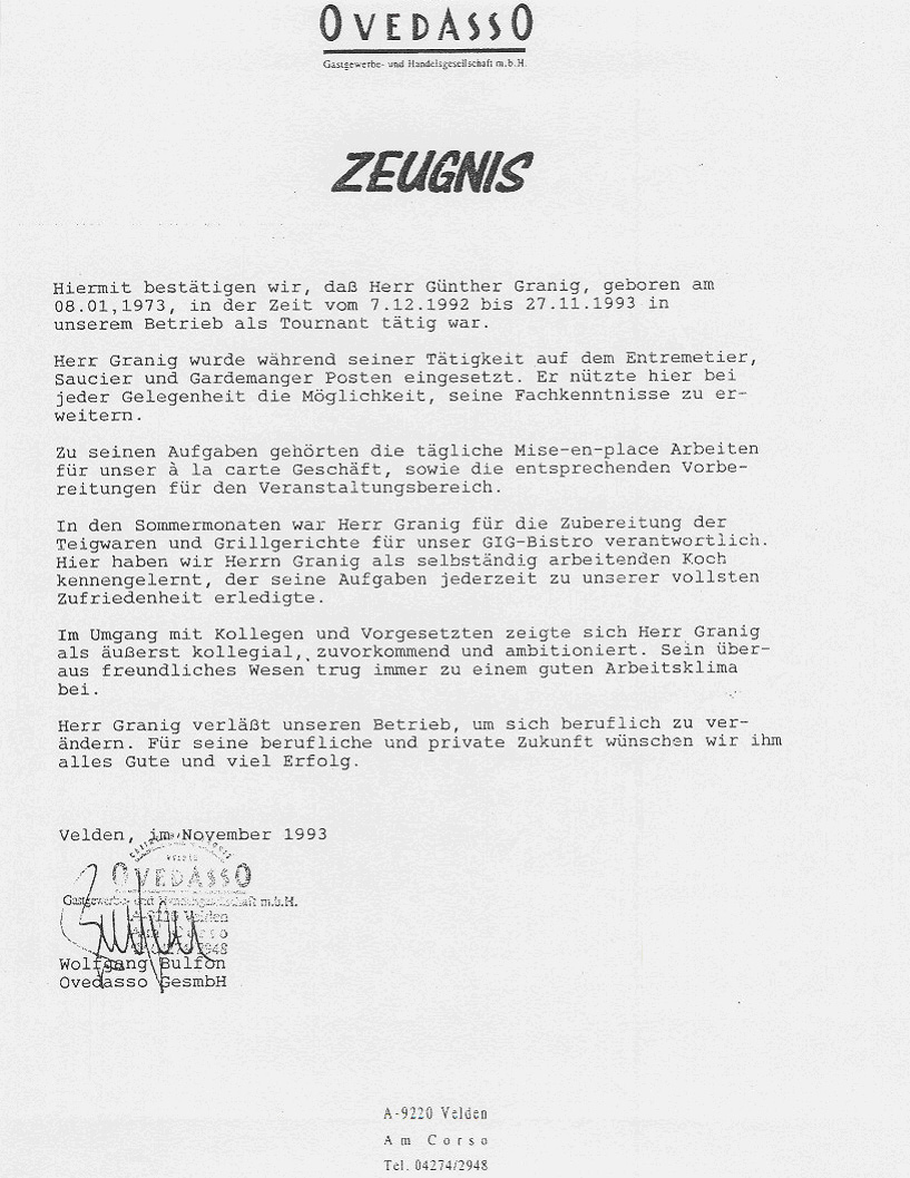 dreijährige Ausbildung zum Koch. Weil ich bei meiner Arbeit als Koch eine ausserordentlich